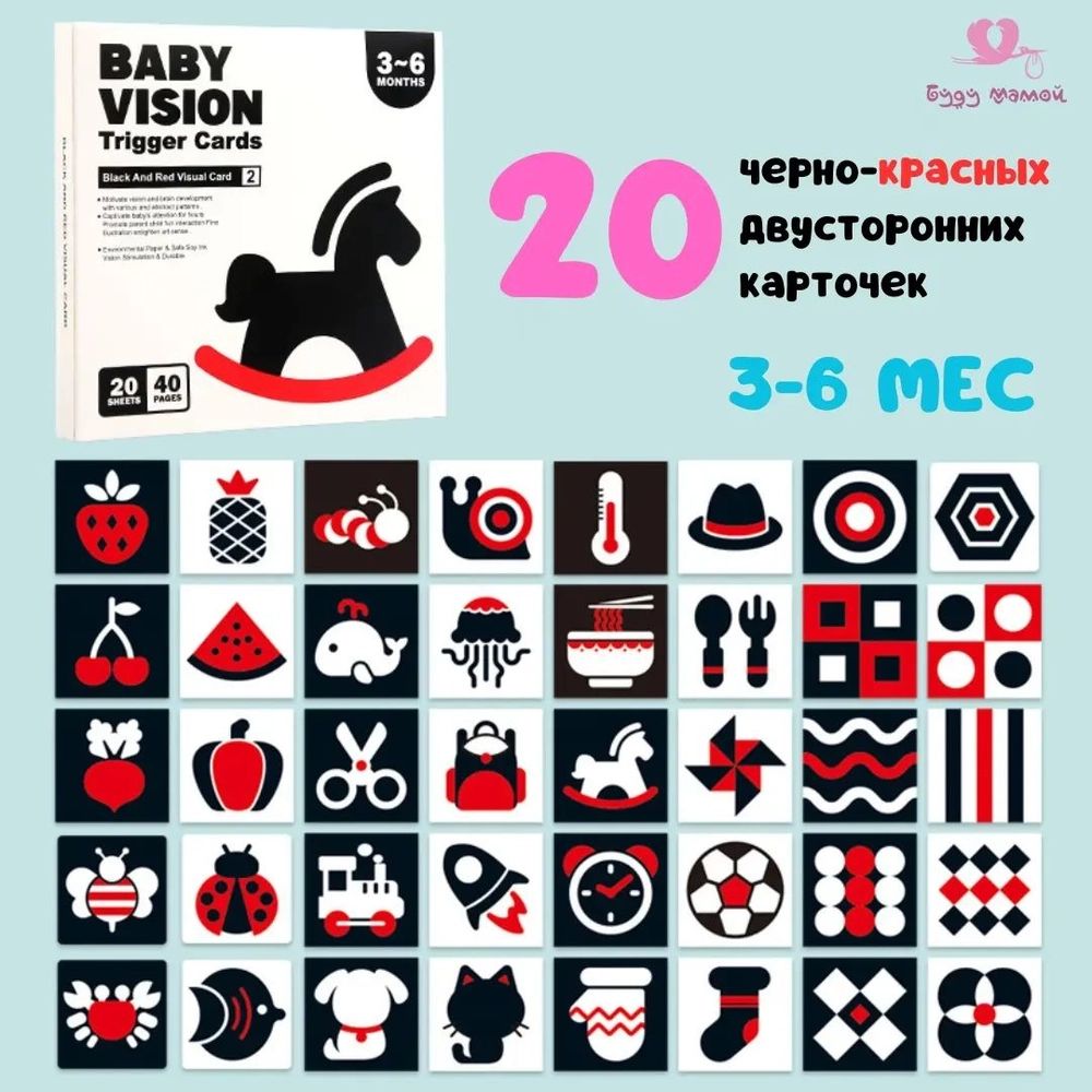 Черно-белые развивающие карточки для новорождённых, 3-6 месяцев (Лошадка)