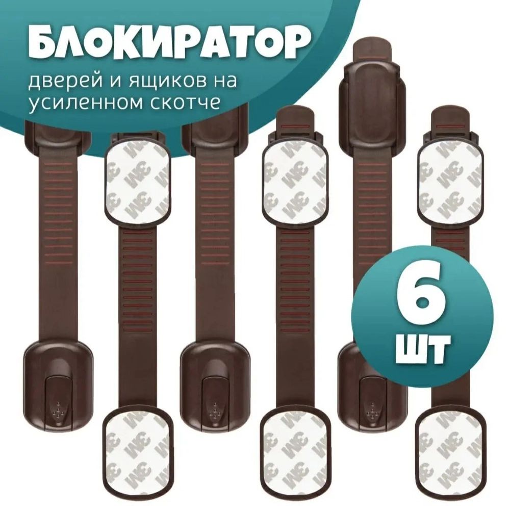 Блокиратор дверей и ящиков, блокиратор детский с усиленным скотчем - 6 шт, цвет коричневый