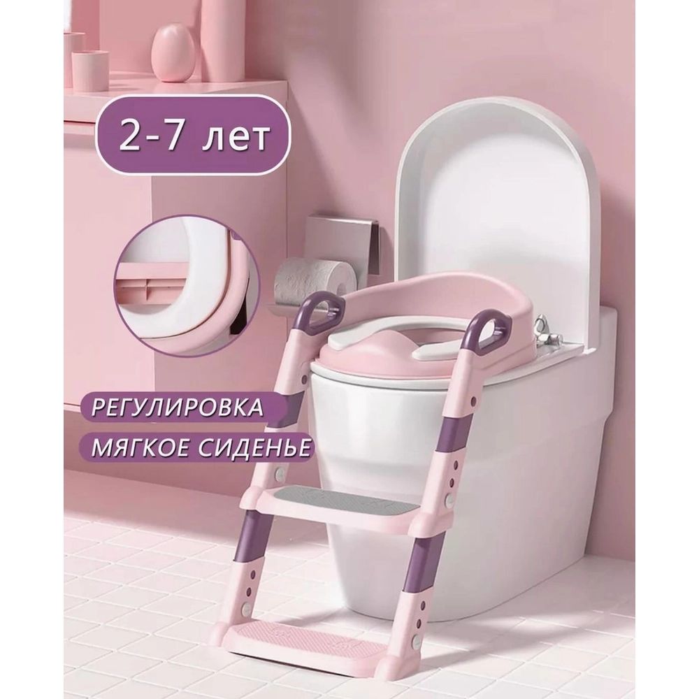 Детское сиденье на унитаз мягкое со ступенькой и лесенкой, цвет Розовый ( PU сиденье)