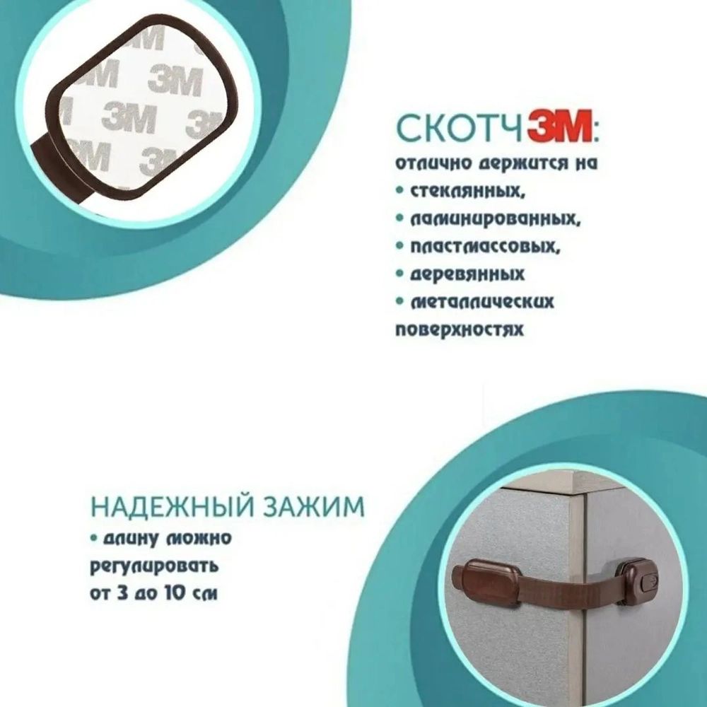 🔸️Длина ремешка регулируется от 3 до 10 см. Эластичность позволяет использовать блокиратор шкафов и ящиков на любых углах и неровностях. 🔸️Взрослый может открывать и закрывать блокиратор одной рукой, при этом малыш не сможет его открыть самостоятельно.
