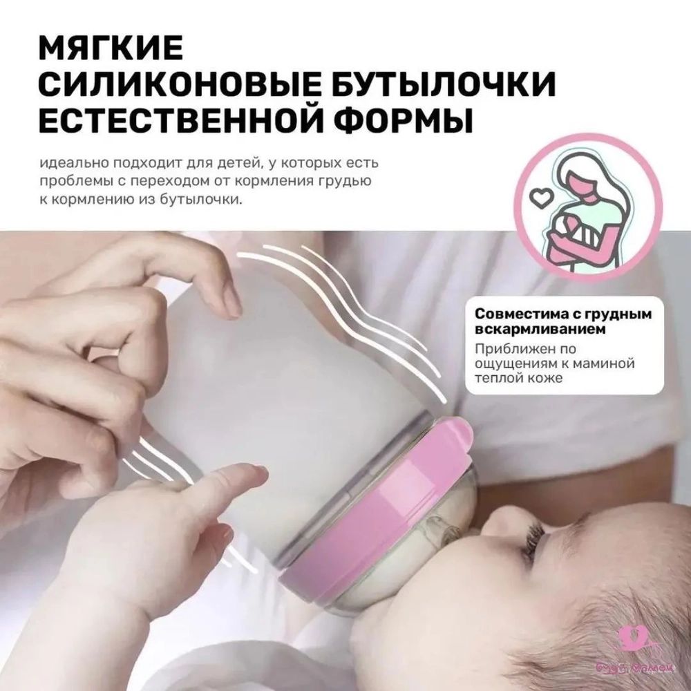 🔸️Бутылочка изготовлена из нежного, гиппоаллергенного, пищевого силикона. Анатомическая форма естественным образом имитирует грудное вскармливание, а наличие антиколиковой системы препятствует возникновению колик у малыша.