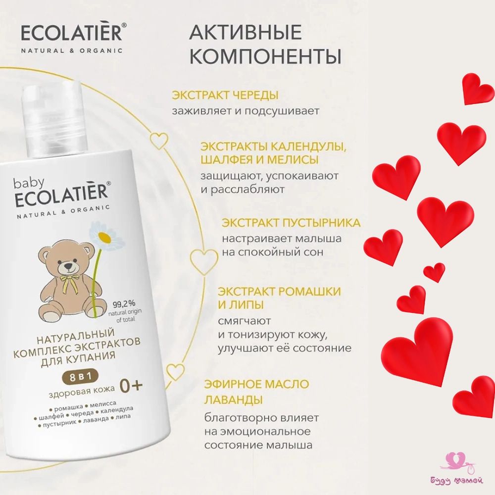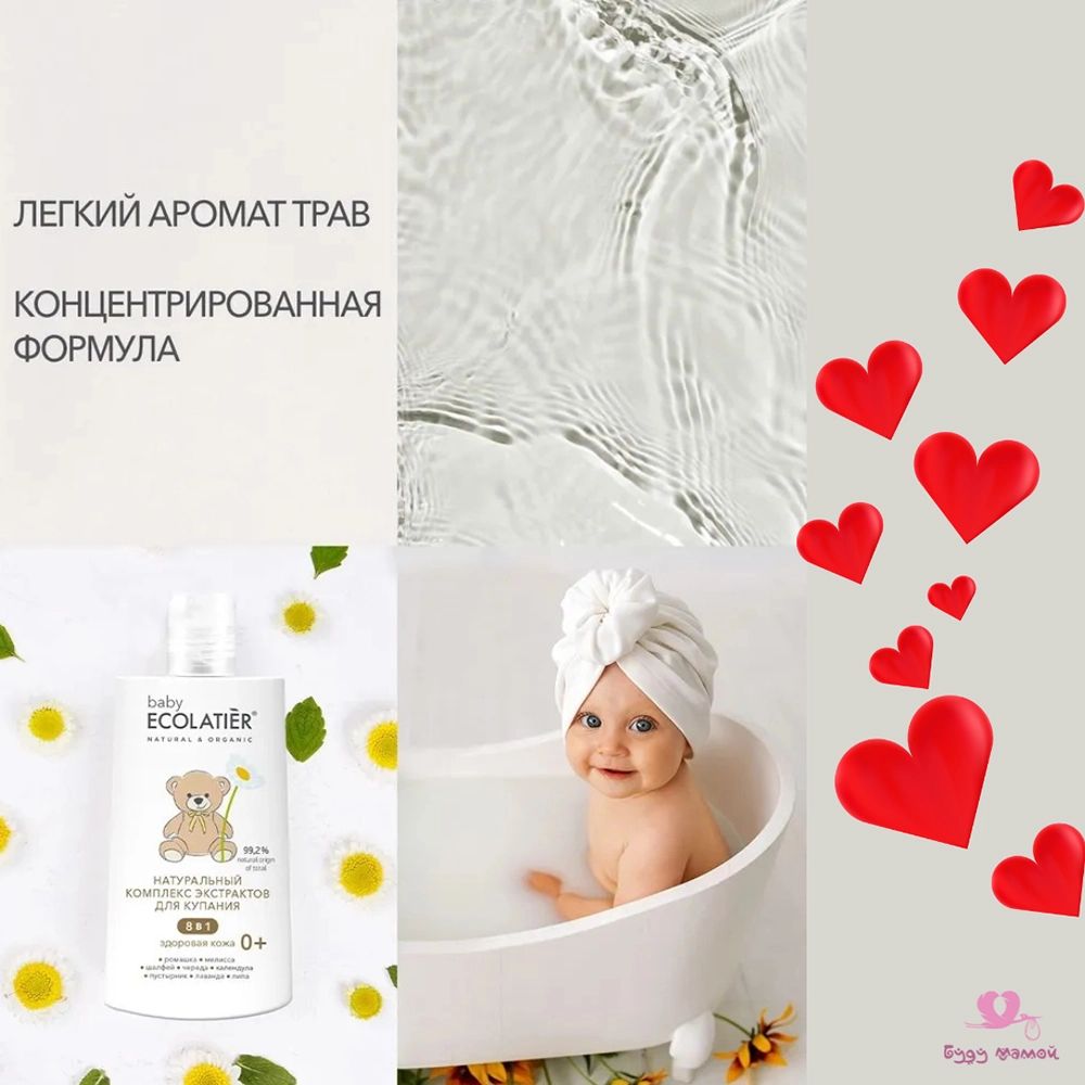 🔸Детское средство для купания ECOLATIER "Здоровая Кожа" нежно заботится о коже малыша с первых дней его жизни. Натуральный комплекс экстрактов увлажняет, смягчает и питает кожу, успокаивает перед сном. Рекомендовано в качестве добавки в ванночку для купания. Содержит более 99% ингредиентов натурального происхождения.