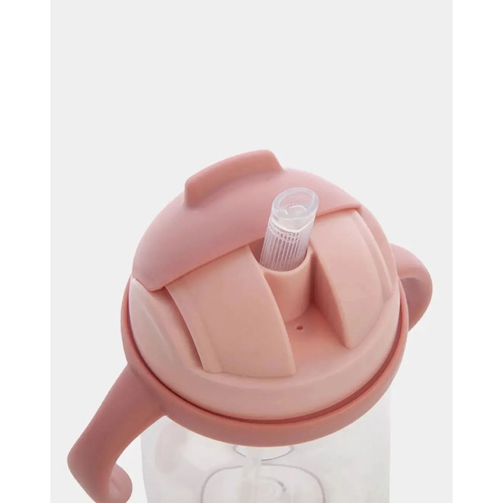 Кружка-поильник с гибкой силиконовой трубочкой и удобными ручками для детей с 6 месяцев 250 мл, цвет розовый, Обезьянка