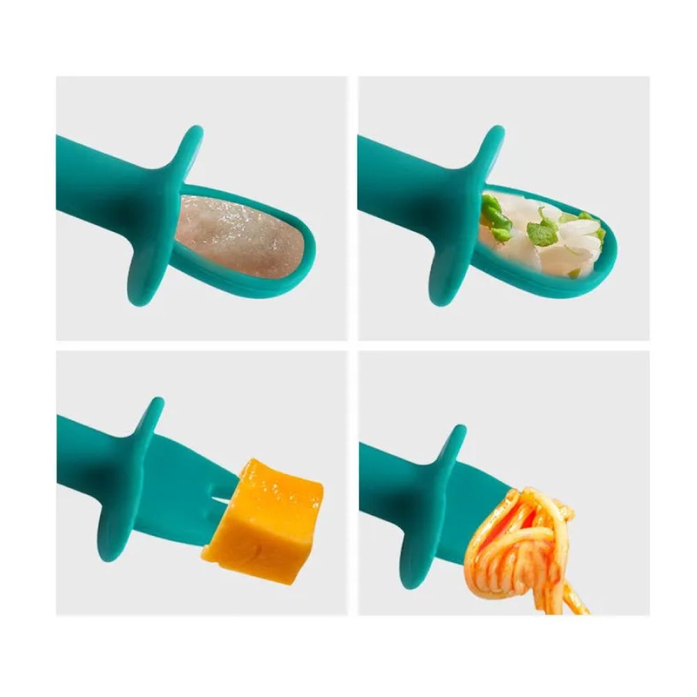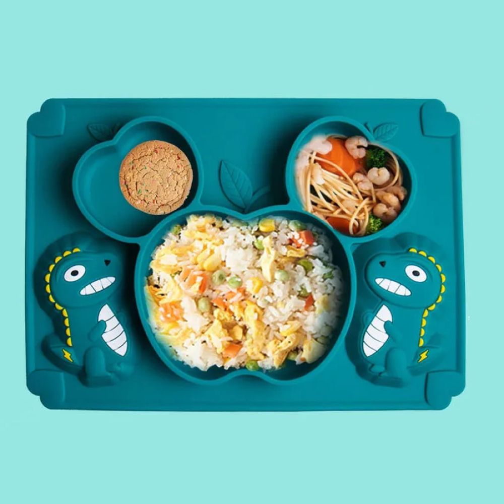 Набор для кормления силиконовый на присоске. Тарелка на присоске с ложкой и вилкой. Сделана из пищевого силикона, безопасный материал для малышей. Не имеет запаха, легко моется, не впитывает запахи и не окрашивается. Приятная на ощупь. Не содержит Бисфенол А (BPA free). Присоска на дне, надежно фиксирует тарелку. Форма в виде динозавра привлечет вашего малыша. Посуду из силикона можно мыть в посудомоечной машине и разогревать в микроволновке, стерилизовать и кипятить. Можно разогревать до 250 градусов. Тарелка: длина 20 см, ширина - 28 см., высота - 2 см. Ложки: 5 гр., длинна 13 см., ширина 2.5 см. В набор входит : тарелка, маленькие ложка и вилка, две ложки побольше.