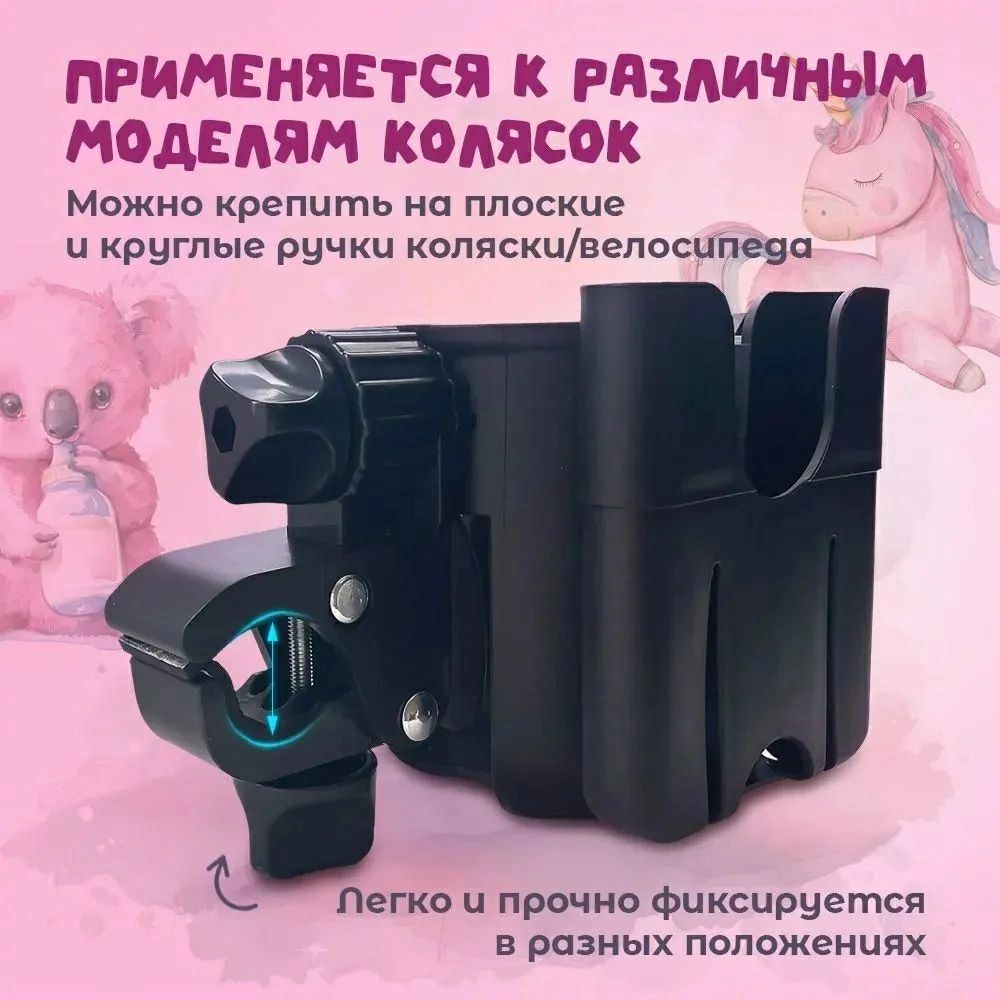 🔸️Подстаканник легко устанавливается на плоскую или круглую ручку коляски/велосипеда/самоката и прочно фиксируется. Стаканодержатель подходит для любого типа детской коляски - прогулочной, трансформируемой, трости . бутылкодержатель легко крепится и подходит для всех типов рам и детских колясок. Имеет возможность вращения с помощью кнопки, что позволяет придать ему максимально удобное для себя положение.
