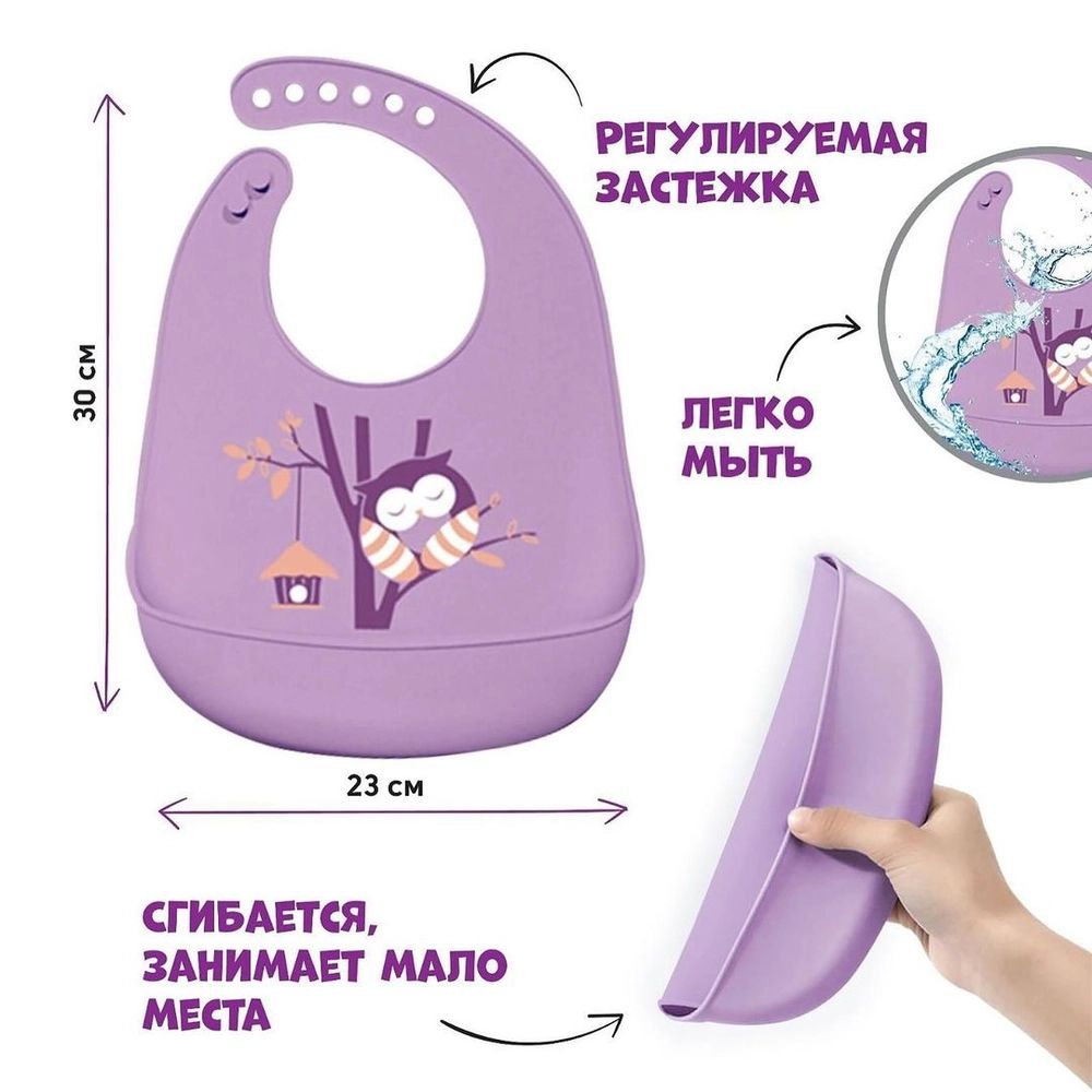 Слюнявчик силиконовый очень хорошего качества, Сова