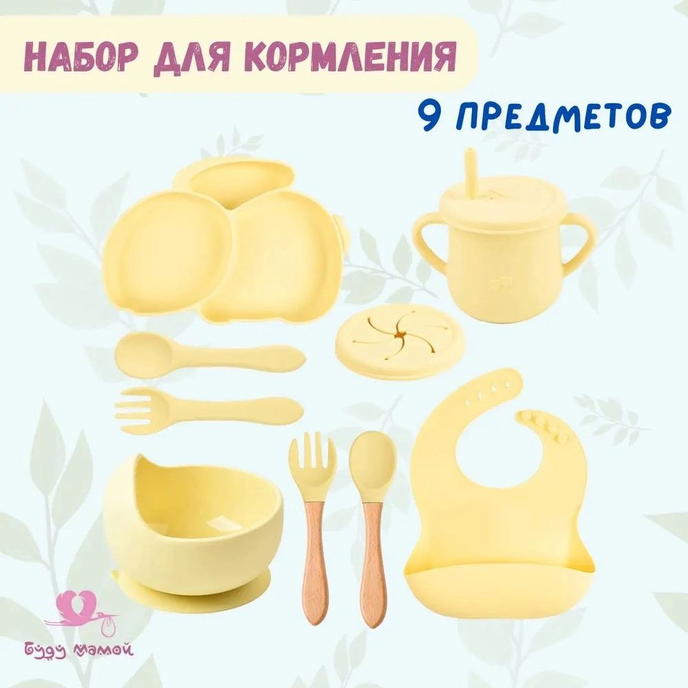 Набор для кормления, 9 предметов. Цвет жёлтый, качество 🔥